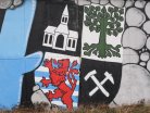 Das Gelsenkirchener Stadtwappen als Graffiti an einer Mauer gegenüber der Glückauf Kampfbahn, der Schalker Heimspielstätte über 45 Jahre.