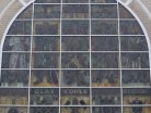 Das Glasfenster aus dem alten Gelsenkirchener Bahnhof, geschaffen von Franz Marten, zeigt die fünf Säulen der Gelsenkirchener Wirtschaft in den Wirtschaftswunderjahren